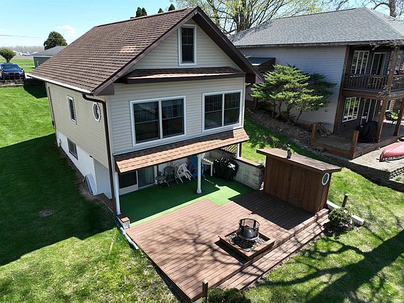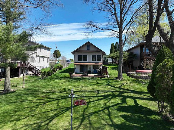 PRICE REDUCED !! 2 bedroom lake level home on Big Monon Bay with lakeviews from nearly every room. Another great feature is all the land that comes with house measuring .65 acre +/- of land total. With nice porch & deck lakeside, 2 wood piers, seawall, det. garage. Spare 1/2 acre +/- lot across street has own parcel. Finished Walkout basement to beautiful views of lake with NO STEPS TO WATER. Exterior has updated vinyl siding, roof and windows. Home has been well cared for and maintained. Det. garage has extra depth for boat and vehicle storage, has a 1/2 bath. Asphalt Parking Lot. Home is situated on a quiet idle zone bay with Short boat ride to Lake Shafer/Indiana Beach Amusement Park. **Update, New Furnace Installed**.