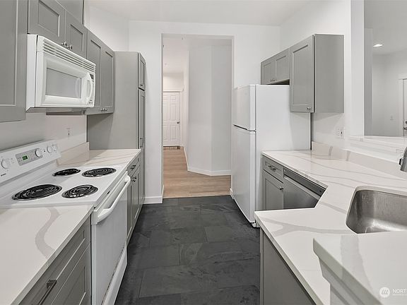Your Perfect Start Awaits! This beautifully updated end-unit condo offers privacy and serenity, nestled next to a 24-acre greenspace with your own attached garage. Inside, enjoy a freshly updated kitchen, a bright primary suite with a California closet system, and an en-suite bath with double sinks. A second bedroom and nearby full bath with extra storage add comfort and functionality. Located across from Lake Sammamish and its trail, this home offers stunning sunsets, eagle sightings, and easy access to Issaquah (1.5 miles) in an award-winning school district. The perfect start for new homeowners or downsizers—schedule your tour today!