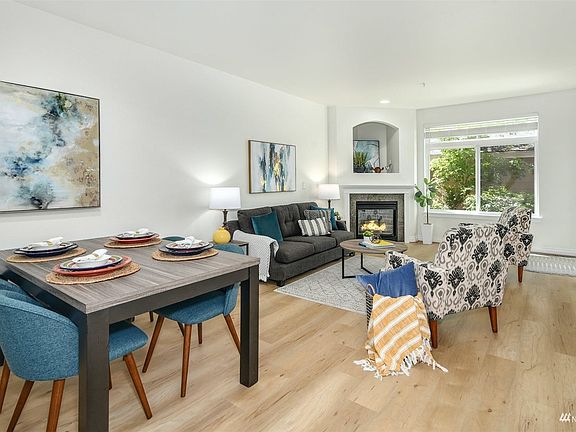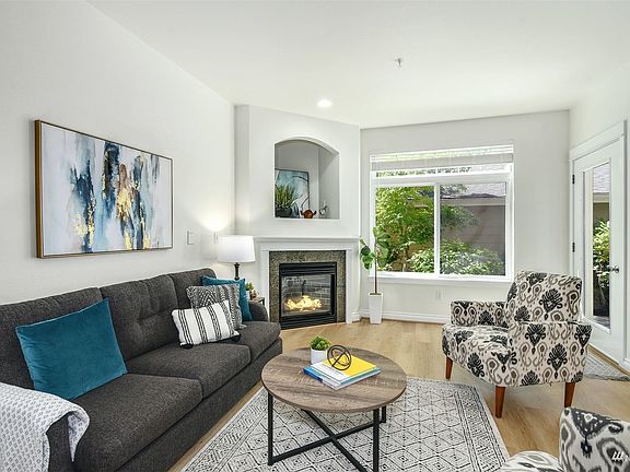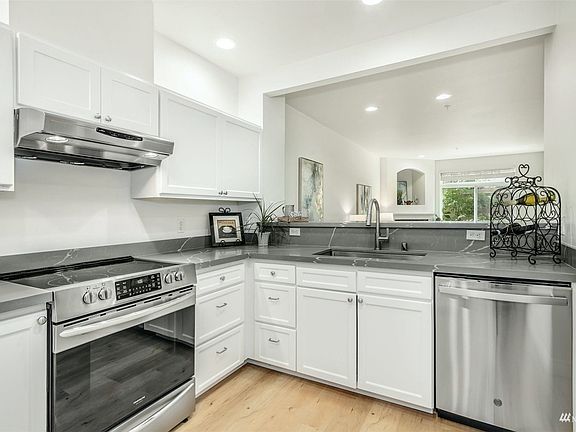 LIVE BY THE LAKE. Remodeled with all your favorites - Quartz, LVP floors, appliances, paint, efficient heating system. Super big patio is a GAME CHANGER - sun and shade, privacy and pet-friendly. Cross the street to E Lk Sammamish Trail. Drive times are 10+ minutes shorter than typical plateau commutes. Open flow from kitchen to living area. New 5-burner range has convection, air fry, steam self-cleaning. New quiet dishwasher, undermount sink, faucet, blinds, bath lights. New electric wall heating & water heater. Updated shaker bath cabinets. Low dues and NO RENTAL CAP - super investment. Garage & lot parking close by. Kick back with a beverage & your own slice of nature at day's end.