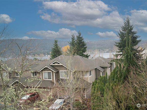 This pristine townhome situated on a bright corner provides beautiful views of Lake Sammamish. Revel in captivating sunsets from the front and a serene greenbelt in the rear. Brand new carpet & paint throughout. Brand new fridge and dishwasher. Brazilian hickory flooring on the main level. It features 9-foot ceilings, 3 spacious bedrooms upper plus a media/bonus room on lower, a gas fireplace, granite tile countertops, ample kitchen cabinets, and a private patio. HOA dues cover exterior maintenance, water/sewer, and earthquake insurance. Enjoy an effortless commute to I-90 and benefit from the highly ranked Issaquah Schools. No rental cap. Elevate your lifestyle in this convenient lake-view retreat.