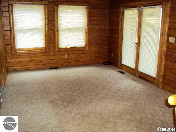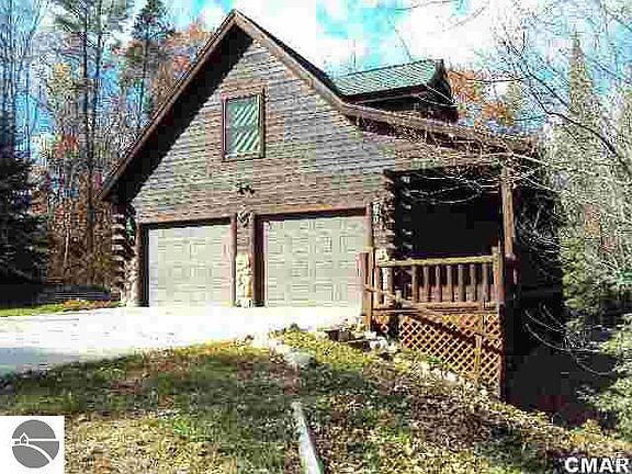 LOOKING UP NORTH? CHECK OUT THIS GORGEOUS FULL LOG HOME ON ALMOST 7 ACRES OF BEAUTIFUL WOODED PROPERTY WITH CRUMLEY CREEK RUNNING THROUGH IT. THIS TWO (COULD BE FOUR) BEDROOM HOME HAS 3 1/2 BATHS, AND A FULL, PARTIALLY FINISHED BASEMENT THAT WALKS OUT UNDER A 56 FOOT COVERED PORCH OVERLOOKING THE WOODED VALLEY. UPSTAIRS LOFT OVERLOOKS KITCHEN AND LIVING ROOM. THERE'S A 2 1/2 CAR ATTACHED GARAGE PLUS A 24X24 DETACHED GARAGE WITH HEAT AND ELECTRICITY. A NATURE LOVER'S PARADISE.