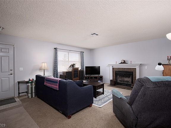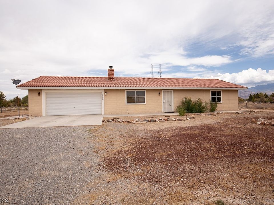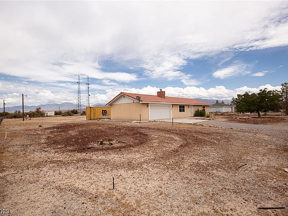 Great price for this 1.1 acre property in Pahrump near the Lakeside Resort! plenty of upgrades including vinyl plank flooring, newer appliances , newer AC/heat pump (installed in 1/22), extra kitchen cabinets, updated primary bathroom & much more. This dual primary bedrooms is a nice sized property with an oversized 2 car garage. Plenty of room for a work shop. There is even an 8X20 shipping container for additional storage! All rooms are large & open. A cozy fireplace is the focal point of the great room. Plenty of space for horses, RV's, free standing garage, etc. Fully fenced lot with a sliding gate along with security doors front and back are nice features. The school bus stop is right at the corner which is very convenient from kids.