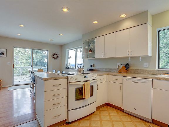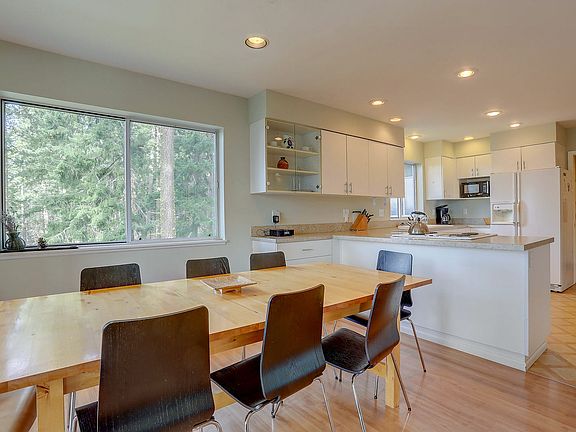 Welcome to Fir Mountain Escape, where you will enjoy beautiful views of the surrounding Hood River Valley and Mt. Hood. Located on five acres of land along the scenic Fruit Loop, this 4-bedroom, 3.5-bathroom home offers a spacious retreat for up to 10 guests. The home features an open kitchen facing the dining area, a cozy living room with a wood stove, and two decksone shaded and one sunlit. The home is equipped with a smart TV in the living room and a recreation room with air hockey, ping-pong, and another television for entertainment. The dedicated office space includes two desks and a secure, wired internet connection. Relax on the deck with a soak in the hot tub while taking in the beautiful views of the surrounding pine trees and Mt. Adams. Fir Mountain Escape is conveniently located in Hood River, just a 12-minute drive from downtown, where you can enjoy restaurants, shopping, and access to the Columbia River for water activities. Explore the many local wineries or hit the slopes at nearby ski areas, including Tea Cup Cross Country and Mt. Hood Meadows Ski Resort, 20-25 minutes away, and Timberline Lodge, 40 minutes away. The property is non-smoking and does not allow parties. Check-in and check-out times are flexible to accommodate your schedule. Includes a dedicated office with two desks and a secure, wired internet connection. A laptop computer is not included.