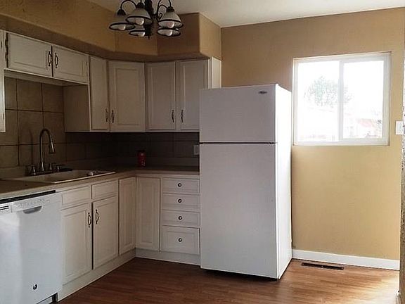 Super home! New flooring throughout, remodeled kitchen with tiled countertops, new fixtures throughout, freestanding wood stove in family room, nicely landscaped front yard with sprinkler system, all appliances stay! Updated windows, furnace, and water heater! Wood laminate flooring in kitchen, living room and family room.
