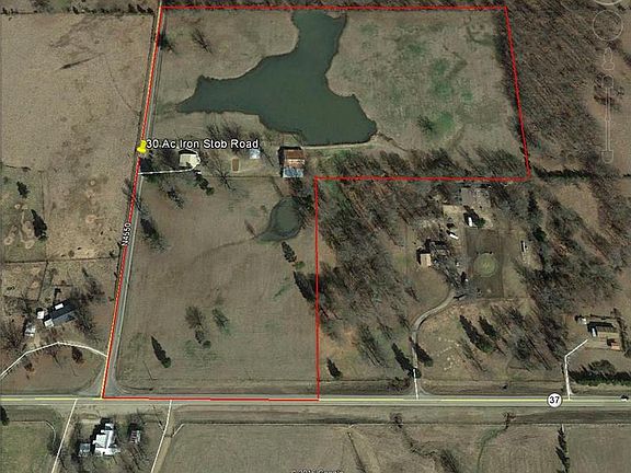 Iron Stob community: approx 1600 Sq. Ft. two bed, two bath brick home on approx 30 ac, with 30X40 metal shop, cement floor and electric. A 60X61 hay barn with a 30X61 implement shed, and a tack room with cement floor. The 30 ac is split into Three separate areas with an approx 2-ac pond dividing the north 20 ac. With another 10 ac on the South side that has a smaller pond. There is a very nice steel corral working pen with head gate, that is set up to service each of the three separate parcels. Also property on Rural Water, garden spot, natural gas, water well. Must be pre-approved...