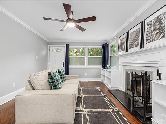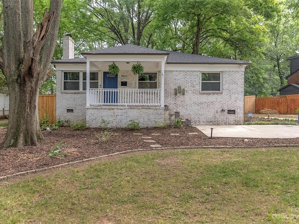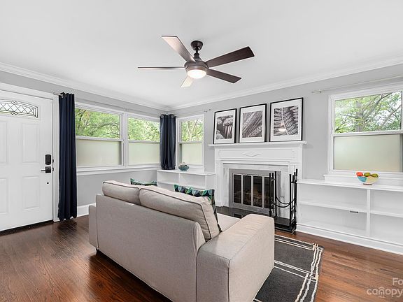 Discover the perfect blend of history and modern amenities in Enderly Park, a historic Charlotte neighborhood. This charming 3-bedroom, 2-bathroom home boasts an updated kitchen with all appliances included, original hardwoods, a wood-burning fireplace, and under-cabinet lighting. Enjoy a large fenced-in backyard, mature trees inspected by an arborist, gutter guards, and a porch perfect for relaxing. Additional features include ring technology, washer/dryer, and a storage shed. Built in 1953, this 1,140 sq. ft. home is full of character and charm.