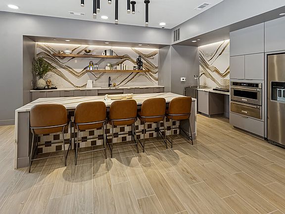 - Exterior features: , 9- and 10-foot ceilings, BBQ/Picnic Area, Bicycle storage, Built-in desk*, Built-in shelving*, Business Center, Dual vanity bathroom sinks*, Efficient Appliances, Electric vehicle charging stations, Free Weights, High-speed Internet Ready, Kitchen island*, On-Site Maintenance, On-Site Management, Package Receiving, Pet Park, Pet Washing Station, Polished quartz countertops, Shower with glass enclosure*, Sundeck, Tile kitchen backsplash, USB outlets