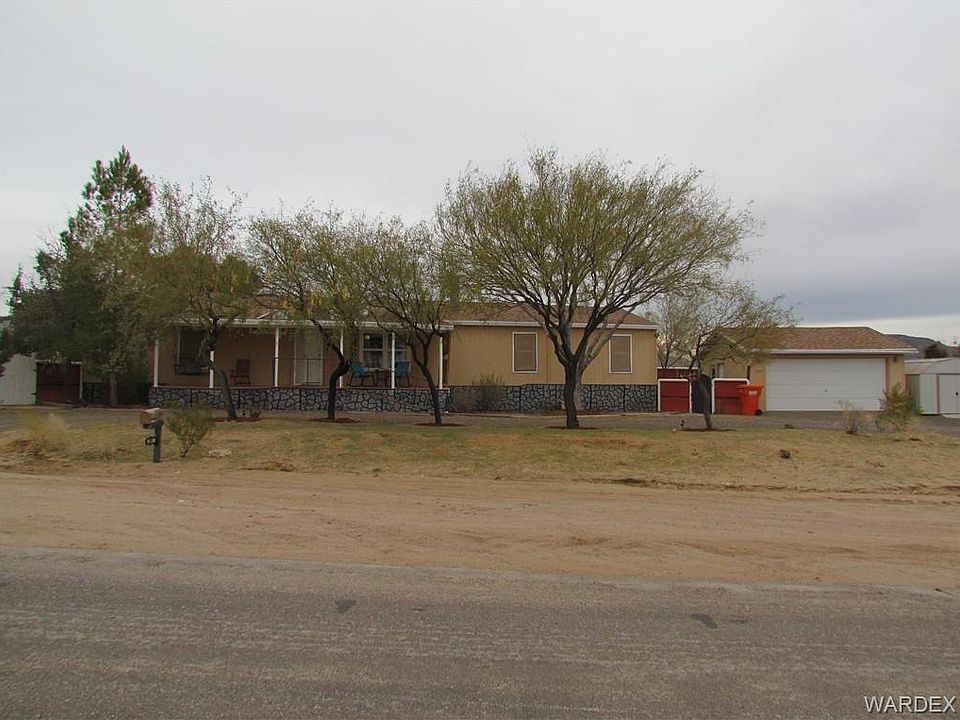 Enter the circular driveway to the well maintained & upgraded home on paved Aztec Rd north of Highway 68 in Golden Valley. Enter from the large covered porch into this three bedroom, two bath 1624 square foot manufactured home with tie downs on a fenced & x-fenced acre. Large island eat-in-kitchen, granite counters and custom cabinets. Wood laminate & tile floors throughout, free standing wood burning stove. Bathrooms have solid surface counter tops and main bath has walk-in shower. Inside laundry room has shelving and plenty of room for storage. Step outside for outdoor living at its finest. Covered patio, landscaped yard with privacy fence and an above ground pool, a 12x16 workshop and a 10x16 Tuff Shed that is currently an office with heating & cooling. Home has a detached 2 car garage and two additional storage shed. Back 1/3 of property is open area large enough for you to house your horses, barn and corral or any additional toys you may have.