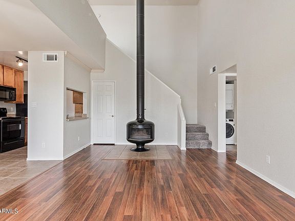The apartment features wood floors as well as full appliances including washer, dryer and a full kitchen. One carport is reserved for the unit. The community itself offers 2 pools and spas, fire pits, fitness center, theater, and community grills as part of the included services.
