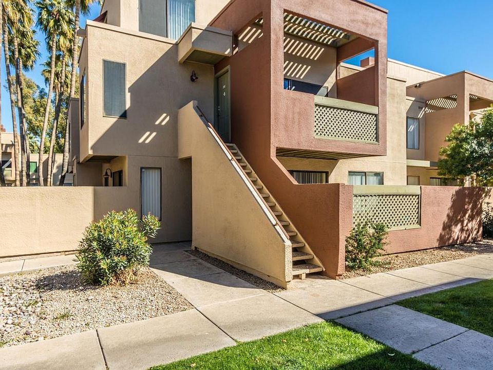 This Charming 1 Bedroom Condo is conveniently located on the ground floor just steps away from Continental Golf Course. The quiet, corner unit has been updated with a custom built-in desk hidden by a modern sliding barn door. The kitchen features granite countertops, cherry cabinets, and newer appliances. The bathroom has a large walk in shower and one of the few condos with their own personal washer/dryer. The large master bedroom is complete with a built-in closet storage unit. This condo is unique as it has 2 separate patios; one West facing and the other North facing. The community amenities include a gym, 2 heated pools, and media room. Close to Old Town Scottsdale, restaurants, bars, galleries, sporting events, etc... Seller to review offers on June 6, 2022. Want to schedule a showing, call Nicole to schedule 480.319.0728.
