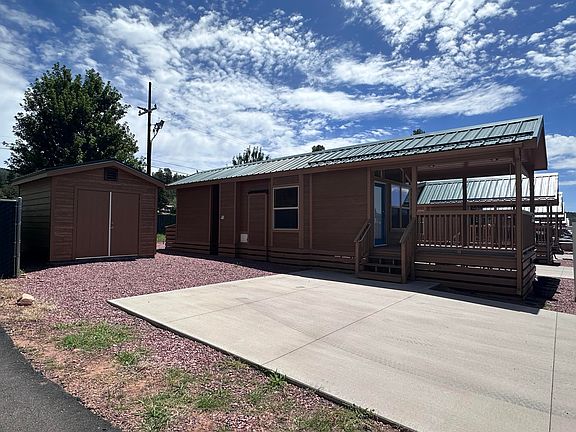 A must see! A beautiful 1 bed, 1 bath, freshly painted tiny home in the adorable Pine Creek Resort. Amazing views of the mountains and tall pines right from your front porch. Walking distance from local bars, restaurants and downtown events. A fantastic weekend escape! Space rent is 435.00 all potential buyers must apply for residency and pass a credit check.