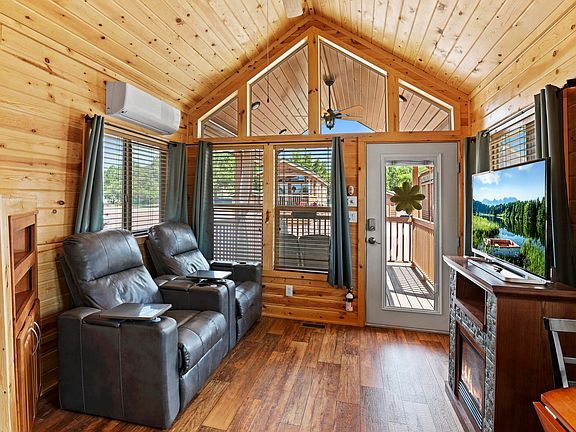 RARE opportunity to own this outstanding summer getaway, located in the COOL pines of Pine, AZ. This Park Model is located in the outstanding community of Pine Creek Resort. This home has many upgrades, and an AMAZING VIEWS of the surrounding mountains. A brand new mini split system has been installed that provides heating and cooling. The home has had electrical upgraded to be able to hook up a generator. The shed has power installed. The rent at the park is very reasonable and another bonus to the property is the unobstructed view of the mountains off of your front porch. Furnishings will be conveyed with the property. Opportunities like this don't come up often. Buy and enjoy today!