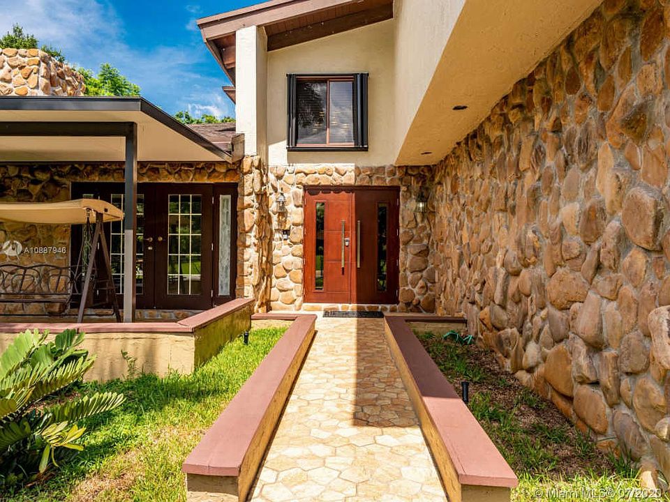 Gorgeous gated estate home situated on over an acre of land awaits you in desirable Cooper City in one of its most coveted neighborhoods. Headed/Salt water pool. 3 Bed ;3 baths + a loft for your office, gym or play area. Custom wood beams adorn the living and family rooms with a fireplace to complete this farmhouse style property. A beautiful large kitchen overlooks the expansive an patio with a custom outdoor kitchen, bar area and gazebo for family fun & entertaining. New travertine pavers in the backyard living space. Underground sprinkling system, hurricane shutters and a shed complete the picture. New Septic system. Rarely is a home available in this neighborhood, and for good reason. Zoned E-2. Terrific location. Easy access to it all. Title Co at closing will be Firm Title.