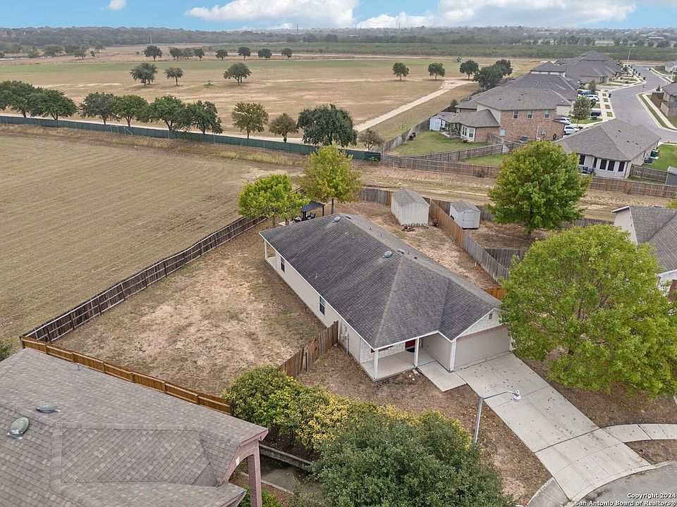 LOW PROPERTY TAXES Nestled in the welcoming community of Guadalupe County in Schertz, Texas, this charming single-story home offers 1,728 sq. ft. of comfortable living space, featuring three bedrooms and two baths. Situated on a semi-cul-de-sac, the property enjoys an expansive 0.28-acre lot that provides exceptional privacy, serenity, and space. Its unique angled placement grants the home three generously sized yards, perfect for outdoor activities, gardening, or relaxation. (Backing up to a serene greenbelt, the property ensures added privacy with no neighbors directly behind, offering a peaceful retreat in your backyard.) Inside, you'll find a freshly painted, well-maintained interior that's move-in ready. Natural light flows through each room, creating a warm and inviting atmosphere. The master bedroom includes a versatile sitting area, ideal for an office, nursery, or flexible space tailored to your needs. Outside, a shed adds even more functionality, providing storage or serving as a potential she-shed or man cave. The home's layout balances open living areas for gathering and cozy spaces for quieter moments. With its curb appeal and spacious outdoor setting, this home offers an inviting environment to create lasting memories. Experience comfort, charm, and ample outdoor living in this Schertz gem.
