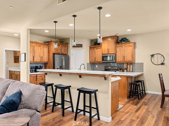 OWNED SOLAR, .25 ACRE CORNER LOT WITH MINI-PRIMARY! Welcome to this beautiful home located in the highly desirable Hartley Park neighborhood of Chico. With over 2,300sqft of thoughtfully designed living space, this 4-bedroom, 3-bath home offers both style and versatility, perfect for modern living. Inside, you'll find an ideal split floor plan featuring a mini primary suite with a private en-suite bath—perfect for guests or multi-generational living. Rich laminate floors, vaulted ceilings, recessed lighting, and a stone gas fireplace create a warm and inviting living room centerpiece. The chef’s kitchen is equipped with quartz countertops, subway tile backsplash, slate appliances, a spacious eating bar, and a closet pantry. The adjacent laundry room includes built-in cabinetry and a utility sink for added function. A versatile, large bonus room just off the entry makes a great home office, guest room, or playroom. The primary suite is a private retreat with backyard access, a massive walk-in closet, and a spa-like bath featuring quartz dual vanities, a soaking tub, and a step-in shower. Two additional bedrooms and a full guest bath complete the home’s smart layout. Step outside to a beautifully landscaped backyard with a lush lawn, concrete patio, and room to add a pool. Additional upgrades include owned solar, potential RV parking, a tankless water heater, and clear pride of ownership throughout. Don’t miss your opportunity to own this move-in-ready gem in one of Chico’s most loved neighborhoods! Schedule your private showing today.