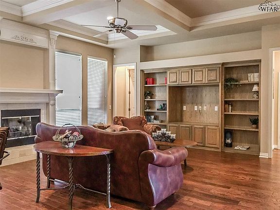 Gorgeous 4/2-0/2 Lake Wellington home located across from West Foundation Elementary. Living room has fireplace, coffered ceilings, & hardwood flooring. Kitchen has built-in appliances, large center island, breakfast/serving bar, & walk-in pantry. Large dining area. Isolated master is generous in size & has en suite bath with Jacuzzi tub, shower, dual sinks, & oversized walk-in closet. Hall bath has shower/tub combo. Backyard has covered patio, storage shed, privacy fence on concrete runners. Storm shelter.