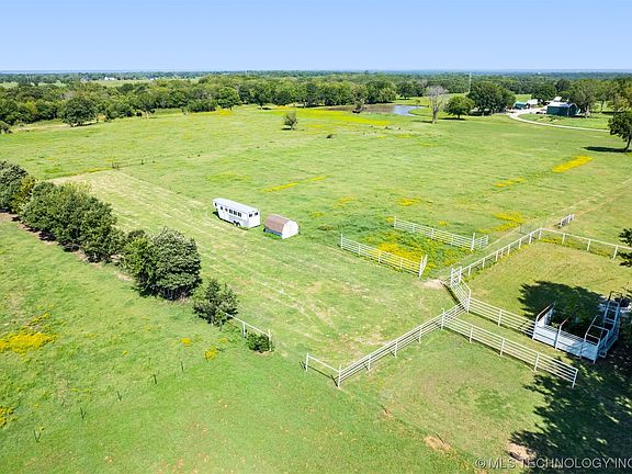 Ready for some awesome country living? Nestled in the rolling hills of NE Oklahoma, is this property a beautiful 20-acre homeplace! Watch the sunrise from the front porch and the sunset from the back patio. The property is a perfect rectangle, with beautiful trees, and is completely fenced! Open living room, kitchen and dining area with fresh paint, new cooktop, a pantry, bar, and island area, 3 bedrooms, 2 bathrooms, bonus room, and large, screened-in front porch. The detached two-car garage has room for storage and a work area. The big backyard is fenced and has shade trees. There are other pens located behind it. Come take a look at this one!