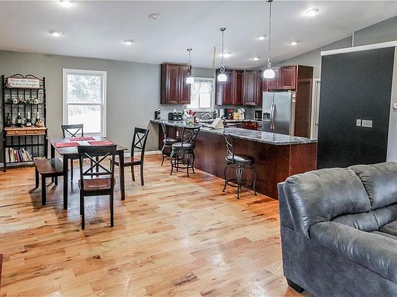 Beautiful four bedroom, three bedroom ranch-style home, sitting on 12.9 gorgeous acres features great open floor plan on the main level! Kitchen includes gleaming hardwood floors and a large walk-in pantry! The land includes two ponds and a 30X50 outbuilding! Finished walkout basement has beautiful stamped concrete and is home to three other bedrooms!