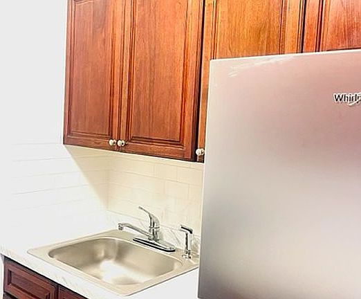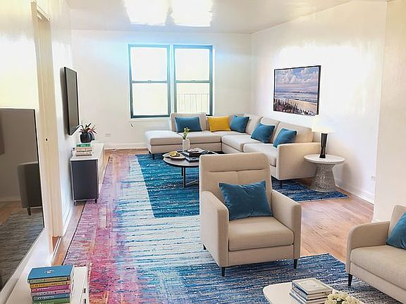 This high-floor alcove studio faces east and has a wide open exposure. You could wall off the bed alcove or put up a bookcase or something to separate the room. It's probably the best studio in the building. With the alcove layout, the apartment is more extensive than many one-bedroom apartments; the Closet space is fantastic. A convenient dressing area outside the bathroom has a separate privacy door. The bathroom is windowed and spacious, with white subway tiles, a classic black-and-white checkered floor, and a soaking tub. A galley kitchen is surprisingly efficient. It has stainless steel appliances, room for a dishwasher if you like, and cherry cabinets that go to the ceiling to maximize storage. A white backsplash and marble-effect countertop give it a modern, sharp, and clean look. Good-sized dining area opposite kitchen. The building is kept very clean, with a live-in super. The laundry is on the ground floor, conveniently close to the elevator servicing the apartment. Sorry, no dogs are allowed. The photos have been virtually staged to see better how well this apartment can accommodate your furniture. Call me to see Today