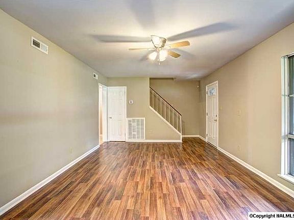 This 2-story home in Huntsville is full of endless possibilities and would be a great place to start a family. Enjoy a spacious family room with new laminate flooring, smooth ceilings, & a ceiling fan. There is new paint throughout. The kitchen features lots of cabinet space and access to the back patio through the sliding glass doors. Built-in cabinets allow for plenty of storage space in the master bedroom while a private entrance to the driveway allows you to come and go completely unnoticed.