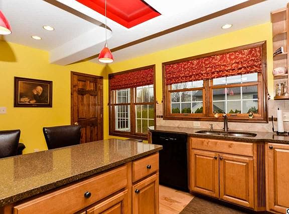 Spacious and Pristine home on corner lot right in Laurel Hills! Kitchen features center island, quartz counter tops & modern tile backsplash. A great layout w/open floor plan to kitchen & living room. Home features second living space & dining room as well! Nicely finished stamped concrete patio in rear of home. First floor bath & two full baths upstairs. Large lower level is fully finished with gas fireplace.