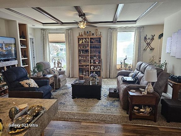 This is a beautiful, feels like brand new, 3 bedroom 2 bath home! There is plenty of elbow room with a family and a living room area, all open to the kitchen for a nice big great room feel. Nice sized bedrooms and closets. All appliances stay! Notice the high end blinds that open from the bottom or the top and window coverings. This is one of the nicest MH's I have ever seen. It has been very well maintained and shows pride of ownership. There is also a small shed for extra storage and a cute little back patio. Note that the wheelchair ramp in carport can be removed and stairs are still intact for more room for your vehicle. Must get park approval prior to accepted offer.