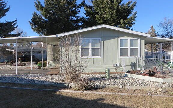 Immaculately updated throughout, this 2 bedroom, 2 bath manufactured home has nearly everything repainted or replaced. It feels like a newer home. Light and bright throughout, this home is situated on one of the largest lots in the park with a beautiful backyard and a large, covered deck to relax and enjoy the yard. There are two nice storage buildings in the back and a wooden walking path that surrounds the home. In 2018 the composition roof was replaced and new vinyl windows were installed (with the exception of the casement window in the primary bath). It has gas forced-air heat and central air conditioning. This home is situated in a 55+ park and the $465 space rent still covers water, sewer, garbage and snow removal, unlike numerous other parks in town.