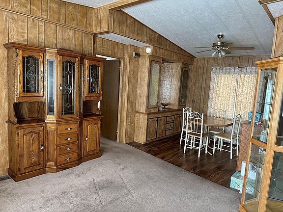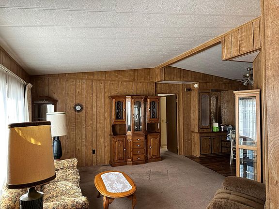 Well maintained 3 bedroom 2 bath manufactured home in the Summers Lane Estates 55+ community park. The home has many great features including: vaulted ceilings, built in bookshelves, family room and living room, dining room with built-in hutch, large kitchen with lots of storage, and a soaking tub and walk-in shower in the primary bedroom. There are covered decks on the front and back of the home, low maintenance yard with two storage sheds and a two car carport. Buyers will need Park Approval. Space rent includes water, sewer and garbage pickup.
