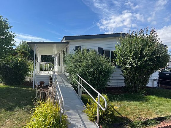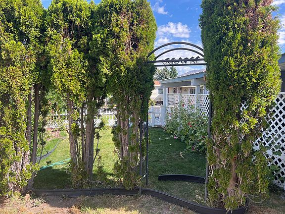 It is back on the market through no fault of the home! Recent bank appraisal came in at $73,000. Discover this super cute 2-bedroom, 2-bathroom home boasting 1,248 square feet of comfort and style. With updated vinyl windows, and modern window treatments and fixtures throughout, this home offers a welcoming ambiance. Stay comfortable year-round with gas forced air heating and air conditioning. The formal dining room, complete with a built-in hutch, flows into a spacious living area, perfect for entertaining or quiet evenings. The large master suite features a bathroom with a tub, vanity, and ample linen storage. Outdoor living is equally appealing, with a front deck, a fenced yard, and a patio complete with a gazebo—ideal for relaxing or hosting gatherings. Additional features include two storage sheds and an attached carport. Price reflects the home needing new flooring. 55 & older Park & subject to park approval.