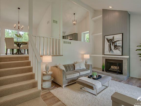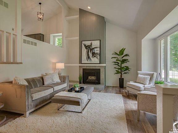 Updated Deerfield Home! Enter into the dramatic living room with vaulted ceiling, amazing fireplace & new luxury vinyl plank flooring. The dining area and updated kitchen overlook the living room. Down the hall is the master suite with private bath, 2nd & 3rd bedrooms with full bath. Updates include new flooring, vanities, sliding doors & light fixtures. Downstairs has a family room, 4th bedroom, bath & laundry. Backyard has new fence, enjoy the deck & patio. Large 2 car garage. Don't miss this one!