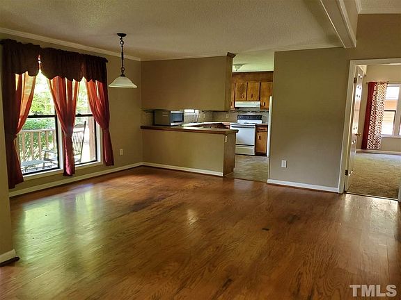 3 bedrooms, 2 baths. Perfect property for the nature enthusiast. Quick access to Jordan lake and the property backs up to the Tobacco Trail. Eat-in Kitchen includes refrigerator, electric stove, dishwasher, counter microwave. Tile counter. Huge family room with fireplace and hardwood floors. Master suite has dual vanity, 2 closets;a huge walk-in shower. Above ground pool in backyard. Large deck. 2-car garage + shop. Well and septic. Lawn Care can be added for $100/month