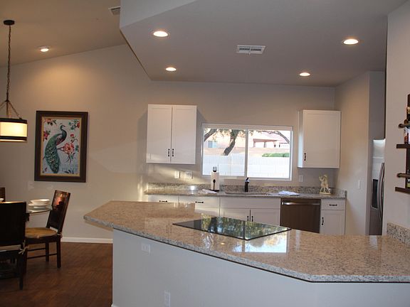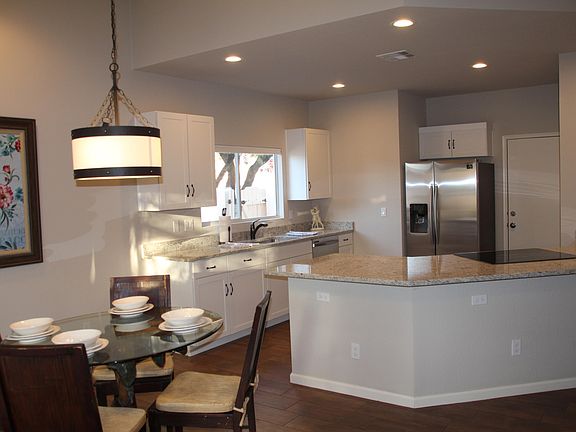 Back on market due to Buyer financing falling through. Beautifully remodeled 3 bed/2bath home in a highly desireable community. All new kitchen cabinets, granite countertops, stainless steel appliances, ceramic tile flooring throughout main areas & new carpet in bedrooms. Freshly tiled bathroom shower surrounds, new vanities, lighting and hardware. Mature, easy care landscape with citrus trees, and care free grass turf in the back for added color. This home has copper pipes. No poly. Low HOA fees include tons of amazing amenities. Meticulously maintained community pool, spa, tennis courts, basketball, sand volleyball, and Ramada facilities. One year home warranty included. Owner/Agent/Licensed General Contractor.