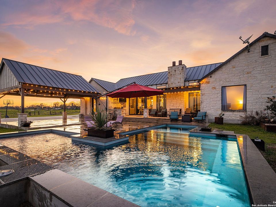 A 2837 sq ft ranch style home located on 7.748 acres conveniently located in New Braunfels within the Navarro ISD. Also includes 4036 sq ft shop/storage/stable and a 952 sq ft Bardominium with two bedrooms. No HOA, bring your horses, beautiful backyard oasis set up for entertaining family and friends with an in-ground pool and hot tub. Game room can be used as a 4th bedroom.