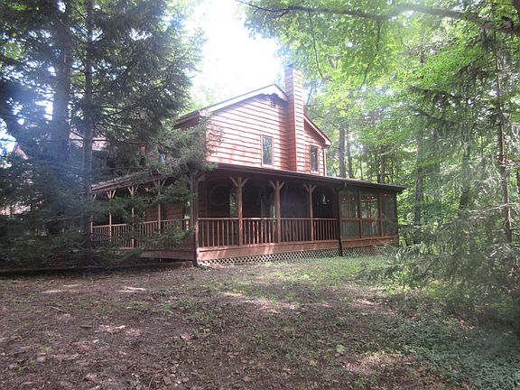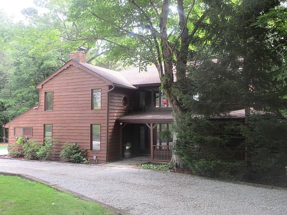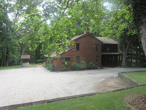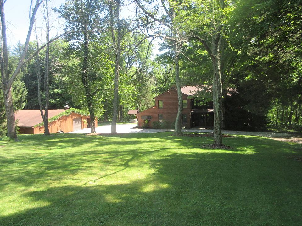 Seclusion at it's finest! As you travel down the serene driveway, you open up to a beautiful, two story home that is full of charm! Huge pole barn with heat and electric plus two other outbuildings. Private land w/ mature trees and woods but has area that could be used for farm animals. Private driveway behind the home leads to additional ''party'' house that overlooks beautiful woods & stream. The main home boasts beautiful pine woodwork, exposed beams,unique finishing and more! Large family room overlooks the wrap around deck, screened in porch, and deck that is perfect for enjoying your evenings outdoors. Large kitchen with lovely cabinetry and corian countertops. The upstairs boasts three bd, two bths, & a loft w/ wood floors . ff laundry & mudroom. Home is truly unique & a must see