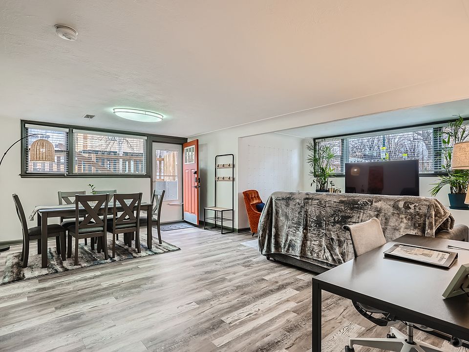 You'll be stepping into a freshly remodeled space that forms the lower level of a charming over/under duplex. Located on a corner lot, your front door opens directly onto the 35th Avenue bikeway, providing effortless access to the Cherry Creek and South Platte bike paths.