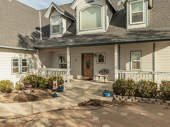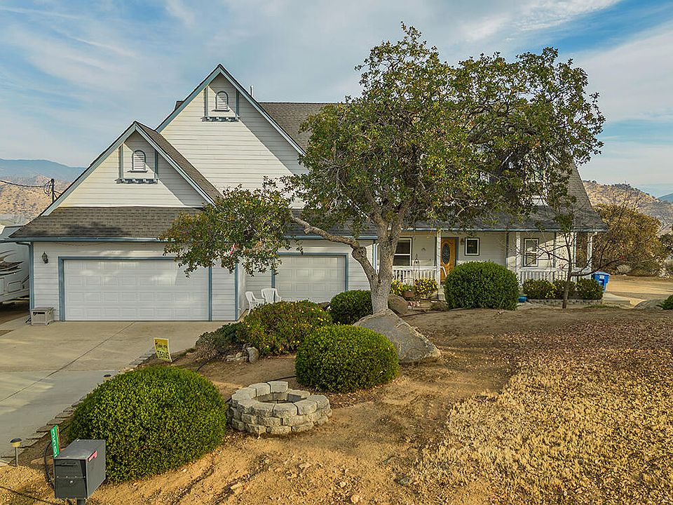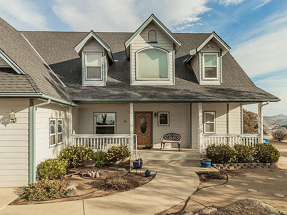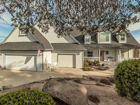 Just minutes off Highway 180, this home offers an incredible view. This beautiful custom home captures this view from almost any room. Beautiful deck made of hardy Trex extends the entire back of the house. Home includes concrete patio areas for entertaining as well. Downstairs you'll enjoy a pellet stove surrounded by built in cabinets located in the cozy and inviting family room. It also has ample windows and a sliding door to the back deck. This welcoming kitchen has solid surface Corian type counters, Built in appliances and breakfast bar. The open dining room has a view of its own with sliding glass door to patio. Also Downstairs is the master bedroom with sliding glass doors to back deck plus master bath with 2 sink vanity, soaking tub, large shower and walk in closet. With the most unique architectural design, enjoy the 2 bedrooms upstairs with an adjoining bath to both. This property also offers a 3 car Garage. One space has been turned into a wonderful workshop for the weekend craftsman. All corners of the 4.5 acres have marked property boundaries. Enjoy the auto sprinkler systems to make life easy and grab some binoculars to make life fun!!