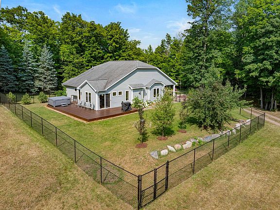 Discover the perfect blend of tranquility and convenience with this exceptional home. Nestled on 5 serene, wooded acres, this charming one-level residence features 3 bedrooms and 2 bathrooms, offering a peaceful retreat in a private setting. Enjoy the added benefit of owning a shared outlot on picturesque Pokegama Lake, complete with a private landing and your own dock. Additionally, the home includes a heated, attached 2-stall garage, providing additional storage. Your storage problems are solved with this fabulous 2100+ sq ft storage building! Boasting drive-through doors, bathroom with shower, office or living space. The furnace was replaced in 2022 and A/C unit was replaced in 2017. Septic is Compliant