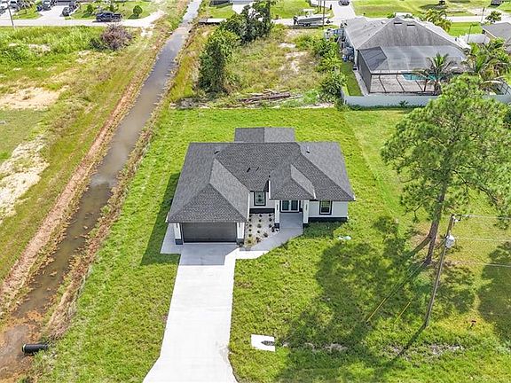 Welcome to your dream home, perfectly situated on a dead-end with canal views and amazing location!! This modern new construction home features 3 bedrooms and 2 full baths, offering an open and versatile layout designed for both everyday living and hosting guests. Every detail has been thoughtfully crafted with high-end finishes and modern conveniences. Rare enhancements include a Premium Security Camera System, Built-in Speaker System, and Sleek Porcelain tile flooring throughout. The chef-inspired kitchen showcases modern black panel accents, Soft-close cabinetry, and Quartz waterfall countertops with a matching full backsplash. This stunning space effortlessly blends function and style, making it the heart of the home. Retreat to Custom-Built Closet Systems designed for both elegance and organization, and enjoy peace of mind with Hurricane-Impact Windows and doors for safety and durability. Enjoy the durability and sleek look of a finished Epoxy Flake floor in the spacious 2-car garage—perfect for both vehicle storage and a clean, low-maintenance workspace. Outdoor kitchen with built in sink and waterproof cabinets giving you longevity and durability. This home is truly one-of-a-kind, crafted with exceptional attention to detail and endless enhancements that elevate everyday living. Schedule your private tour today and fall in love with this beautiful new construction home!