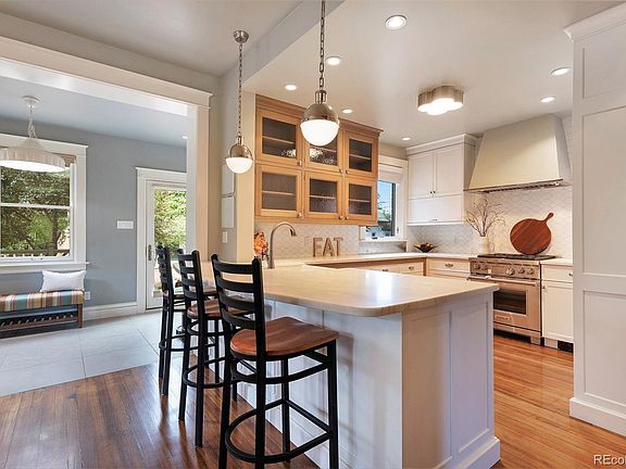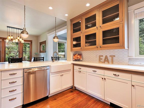 Don't miss out on this rare listing in the Potter Highlands neighborhood. Built in 1910 this 4 Bed 4 Bath move in ready home situated on a quiet corner lot with fenced in back yard. Offering the charm of a well-maintained historic house, original woodwork adorns this beautiful home from the handrails on staircase, built-ins in dining room, to the wood flooring on the main and upper levels of the home. High Ceilings, along with an Open Updated Kitchen boasting Marble Countertops, and High end Stainless Steel Appliances sure to appease any at-home chef. Custom cabinetry with an abundance of storge, along with an integrated refrigerator/freezer is rightfully complimented by an oversized island. The Primary Bedroom features a bay window and dual closets. The remodeled upper bath showcases Heated Floors, double sinks, beautiful marble accents, and oversized shower with dual rain showerhead. The Bedroom Suite with private Full Bath in finished basement could make this floor a nice private retreat for overnight guests. The backyard offers a private oasis from neighbors, built in garden boxes await your desired plantings. Don't forget to check out the newly insulated and finished 2 car garage with heavy duty utility shelving along with the attached side room that could be a multi use room. Incredibly unique to most properties in this neighborhood, this house features not just a 2 car garage but an accompanied 2-car Driveway. supplying parking for a total of 4 cars. Street Parking allowed. Walking distance to restaurants, and shops. Driveway replaced, 2021. Southside fence was redesigned with newly built garden wall, New Pella Windows 2022 & Levolor Window Blinds, a mix of motorized/smart and manual throughout home 2023. Please don't hesitate to view this beautiful home in the "hip zip" of Denver!