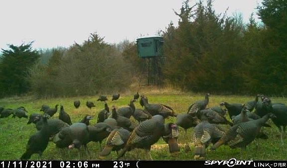 Miles of Trail systems, timber, food plots, clover fields, cedar thickets, creek beds, adjacent to big ag fields, close to town, utilities at road, multiple buildable sites, etc. Good Whitetail/Turkey hunting close to town or opportunity to build your dream estate. The brushy old fields have dispersed cedar thickets that make it a big buck and gobbler haven! Enjoy the comforts of hunting in the Redneck “Big Country” Hunting Blind strategically placed over the established food plots. The trail system & approximate .? mile of road frontage makes for perfect access ANYWHERE on the property no matter the wind! Future building with plenty of acres for your dream estate, gardening, mini farm, etc while still leaving plenty for hunting oasis.