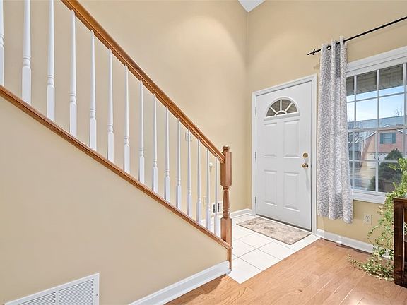 This end unit is in beautiful condition. It is the original model home. It has been lovingly maintained and upgraded. Gleaming hardwood throughout the first floor apart from the master bath and entry which are ceramic. Living room with vaulted ceiling, combination formal living and dining space. Custom top down honeycomb window blinds that allow the light in without sacrificing privacy . Dining has pass through to the kitchen for easy access when entertaining. Kitchen is large with space for a family room or eat in area. Just steps from the half covered and half open rear patio with privacy awning. First floor master with crown moldings and chair rail also has ample storage and a huge master bath. The second-floor loft is a beautiful family room or flex space for any additional needs. Two additional large bedrooms and a full bath on the second floor that boasts incredible storage options. All this and a large 2 car garage with epoxy floor.
