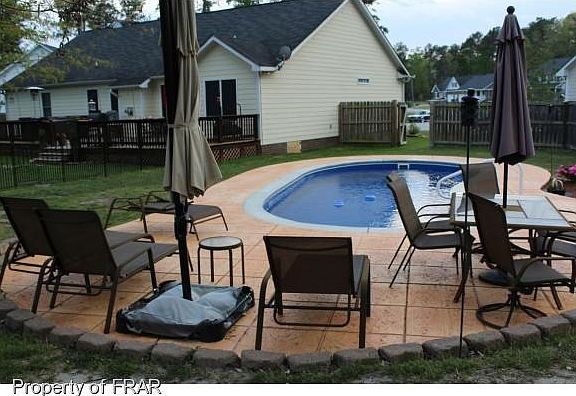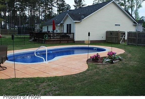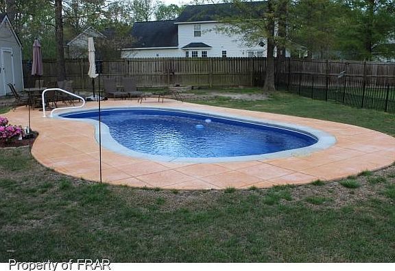 -Very nice family home in a quite culdesac with a privacy fence and large yard and a Beautiful in-ground swimming pool with decorative concrete around the pool. A large play swing set. Another wood yard swing for your enjoyment.Storage Shed for yard and pool supplies.Open Kitchen,large great-room,beautiful hardwood flooring.Very nice master suite with his & hers closets.Jetted tub,separate shower.Large Bonus room.Front porch with plenty of seating. A large back deck. *Jack Britt High School.*