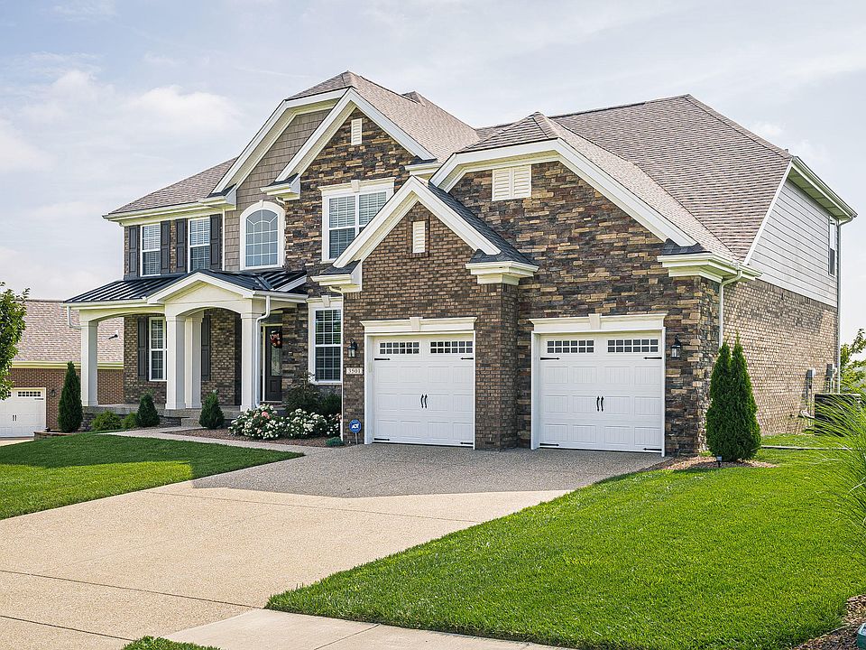 Skip build time with this newer construction in Oldham County located in Heather Ridge Subdivision. Welcome to this 2 year young, tastefully decorated 5 Bedroom 2.5 bath home. Pull in the drive and awe at the amazing curb appeal this home of brick and stone facade gives you. Upon entering the home, the formal living and formal dining room with tray ceiling are just off the entry hallway. The expansive great room with coffered ceiling opens to the massive kitchen that includes a breakfast bar, stainless appliances and access to the 2 car garage. Finishing out the first floor is a half bath and a bedroom / office. The second floor boasts 4 bedrooms a full bath and laundry room. A large loft area is situated between 2 of the bedrooms and the Master Suite. The expansive Master Suite contains two walk in closets, a master bathroom with double vanities and a large walk in shower.