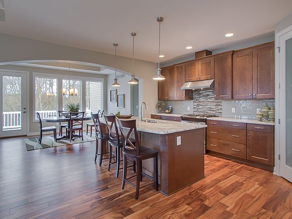 The Kousa is a beautiful designer series floor plan. With just under 2,000 square feet on the main level, the layout is spacious and smart. A welcoming front porch entrance leads you into the lovely foyer (with option for decadent coffered ceilings). Off the foyer is a well sized en-suite guest bedroom and office with French doors. Past the office it opens up to the living room with options for fireplace and coffered ceilings. The living room flows nicely in to the kitchen with large island and pantry and the dining room. The dining room has beautiful windows and a door that lead out to a wood deck, which brings the surrounding nature in. Access to the Owner's Suite is tucked off the dining area and features vaulted ceilings in both the sleeping and bath areas, dual vanities and a large walk-in closet. Rounding out the main level is a mud room and laundry conveniently located off the 2 car attached garage. The lower level adds an additional 1,135 square feet and allows for finished rec room 3rd bedroom and full bathroom. T