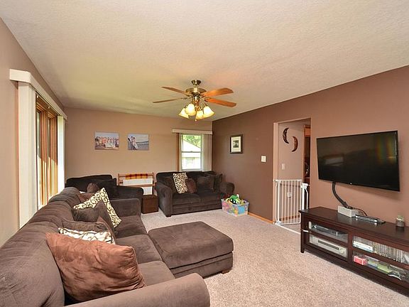 Lots of wonderful things about this cozy house featuring HUGE living room with plush carpet, nice built ins and an abundance of windows! This home has 1288 square feet of finish with an additional 400 square feet finished in the lower level. Three bedrooms includes a huge master bedroom addition! Full bathroom on the main level with tile surround joins the laundry room. Fantastic eat in kitchen includes stainless steel appliances, tile backsplash and sliding glass to patio area. Lower level is mostly finished (concrete floor painted) with gas fireplace. 3rd bedroom, newer bathroom and plenty of room for storage. You will love the extra wide driveway with 2+ car garage with epoxy flooring, workbench and fluorescent lighting. Fantastic yard on large .31 acre lot for your kids and pets to run free. Maintenance free siding. Take a peek at this house as it won't last!