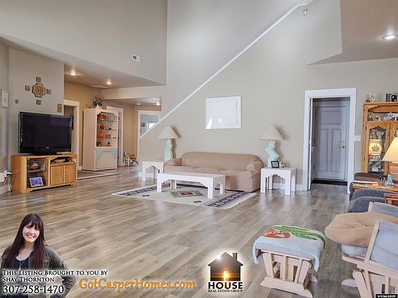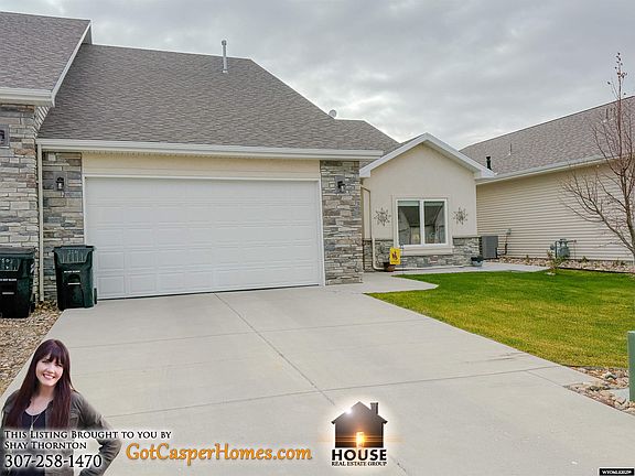 Welcome home to contemporary style, comfort, and effortless living in this stunning 1½-story home offering over 3,100 sq. ft. of beautifully designed space. Featuring four bedrooms and three bathrooms, this home showcases vaulted ceilings, an inviting open floor plan, and a gorgeous kitchen with hard-surface countertops. Everything you need is on the main level, allowing you to live day-to-day without the worry of stairs. The spacious primary suite is a true retreat with a tiled walk-in shower, double vanity, and an expansive walk-in closet, along with excellent storage and closet space throughout the home. The upper level adds even more flexibility and function, offering two additional bedrooms, a full bath, and an ideal office or craft area. Enjoy a private backyard with a generous patio perfect for relaxing or entertaining. This home also features a spacious two car attached garage and convenient sprinkler system. The low maintenance exterior is finished with steel siding and stone accents, and the HOA takes care of mowing and snow removal so you can spend more time enjoying the lifestyle you love. Contact Shay Thornton with House Real Estate Group today for more information at 307-258-1470. GotCasperHomes.com