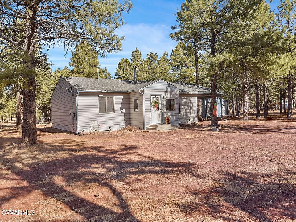 Adorable single level Cabin in the Pines on 1 heavily treed acre lot. This would make an ideal second home weekend getaway or Airbnb Vrbo rental. Featuring 2 bedrooms, 1 bath, cozy woodstove, covered deck, large detached workshop, RV parking, new roof on both the Cabin and shop (installed this month). Close to historic downtown Williams, Grand Canyon. See this one today!