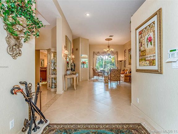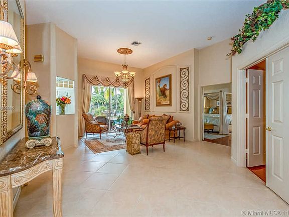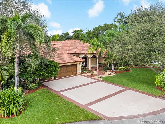 This is one of THE MOST BEAUTIFUL cul de sac lots in all of Davie! Surrounded by water & a park like setting, this outdoor oasis offers stunning peaceful views, large sparkling pool, outdoor kitchen & builder's acre private lot. Step inside to professionally decorated home with over $280,000 in upgrades & features. Huge beautiful kitchen with wood cabinetry, granite & built in fridge. 20x20 porcelain tiles, wet bar, textured ceilings, built-ins & more. Master retreat and upgraded master bath. 5th room is an office with custom cabinetry. HUGE addition complete with recreation & entertaining areas. Interior laundry room AND a mud room off garage. Home Gym. Carlton Ranches is a small boutique gated community with access to biking/walking trails, great schools & highways. This is a HOME RUN!
