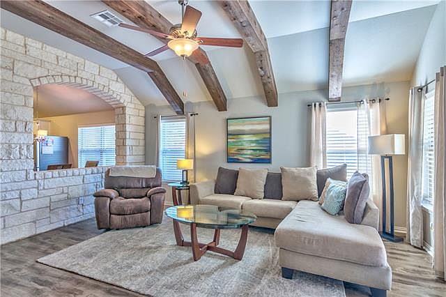 UPGRADES GALORE! Awesome floor-plan with TWO additional office/flex rooms. Backing to green-space for extra privacy; come home to this spacious single story with all the design upgrades! Special features include: Stone wall accent, beams in living room, bay window in master, extra large walk in master shower, water softener. Walk to the neighborhood pool and neighborhood schools