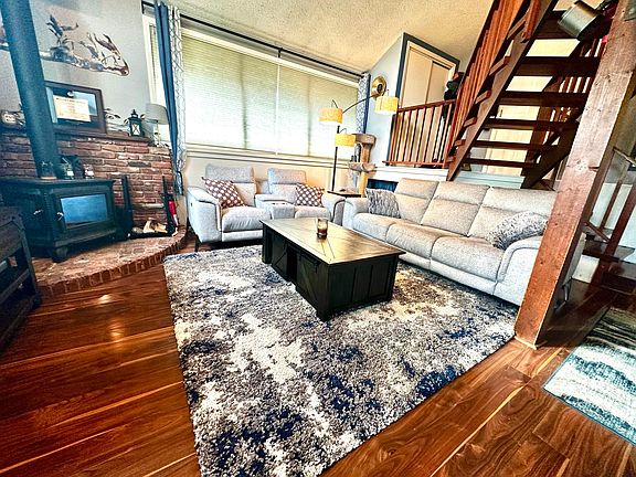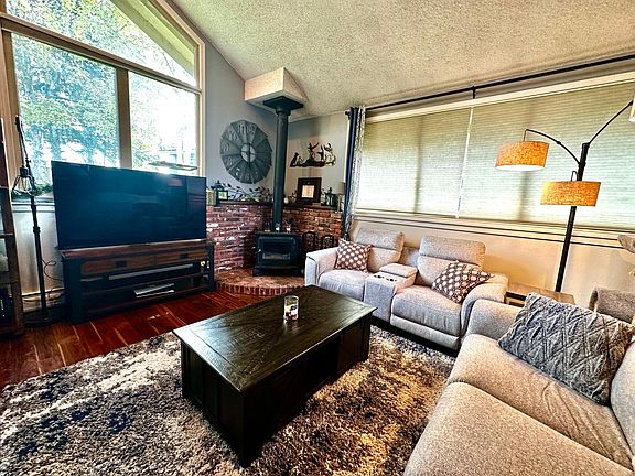 Join the desirable Bayshore community. Tucked away in a private cul-de-sac, this home is backed to the green belt, a park, and is walking distance to the Club House where you can enjoy the pool, hot tub, sauna, and gym access. You'll enjoy spacious open living with vaulted ceilings, open kitchen with all new SS appliances. Home has a cozy chalet vibe. Large fenced landscaped back yard with mature raspberries and garden space available. Abundance of 4* Energy upgrades, soapstone wood fireplace, two car garage, and expanded three car driveway with additional gravel pad for parking your Alaskan toys. Renter pays utilities including water, electric, and internet. Owner pays HOA fees and trash. Last months rent due at signing for security deposit.